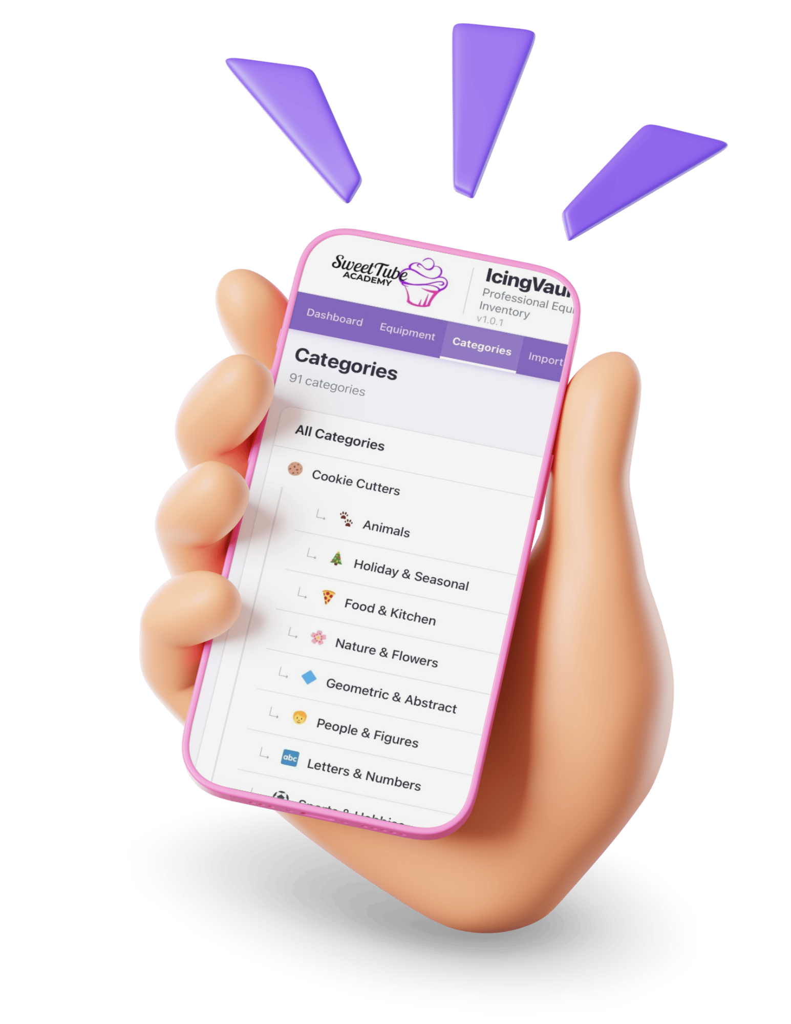 Create unlimited category levels. Organize cookie cutters by Animal → Farm Animals → Cows. Drag to reorder. Add custom icons for visual identification.